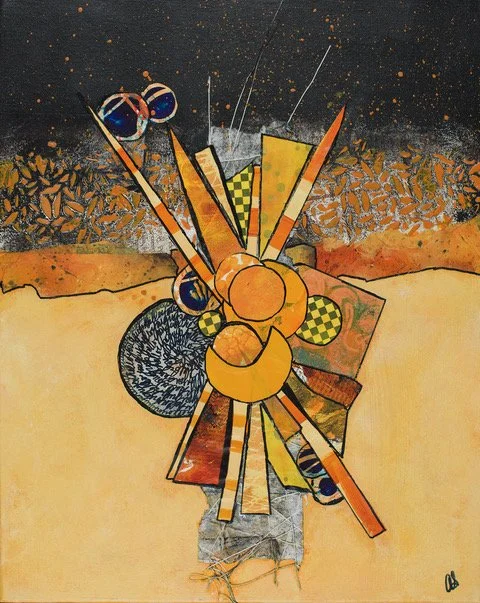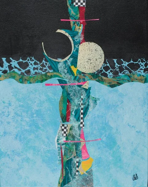 A Port Townsend, WA resident for over 20 years, Anne Schneider has emerged in her retirement as a mixed media collage artist. She has studied with teachers from all over the country. While learning a variety of techniques in collage artistry, Anne has found her own unique voice in art bringing a lively palette of acrylic paints and collage papers to the canvas. She employs whimsical qualities, geometric shapes and dynamic movement as she tells a story in her art. However, her art always leaves room for the observer’s interpretations.