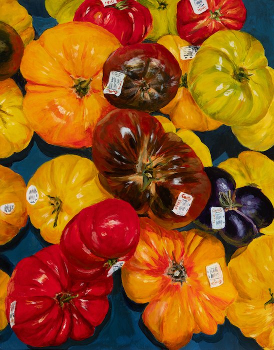 Karen Kay Gaul (Kay) works in acrylic painting. She’s interested in forgotten spaces, ruins, and the surfaces of materials—such as wood, iron, metals—as they age. She is captivated by what builds up and what breaks down. She also paints bright images of food, flowers and everyday objects; landscapes of spaces she loves; and sweet animals.