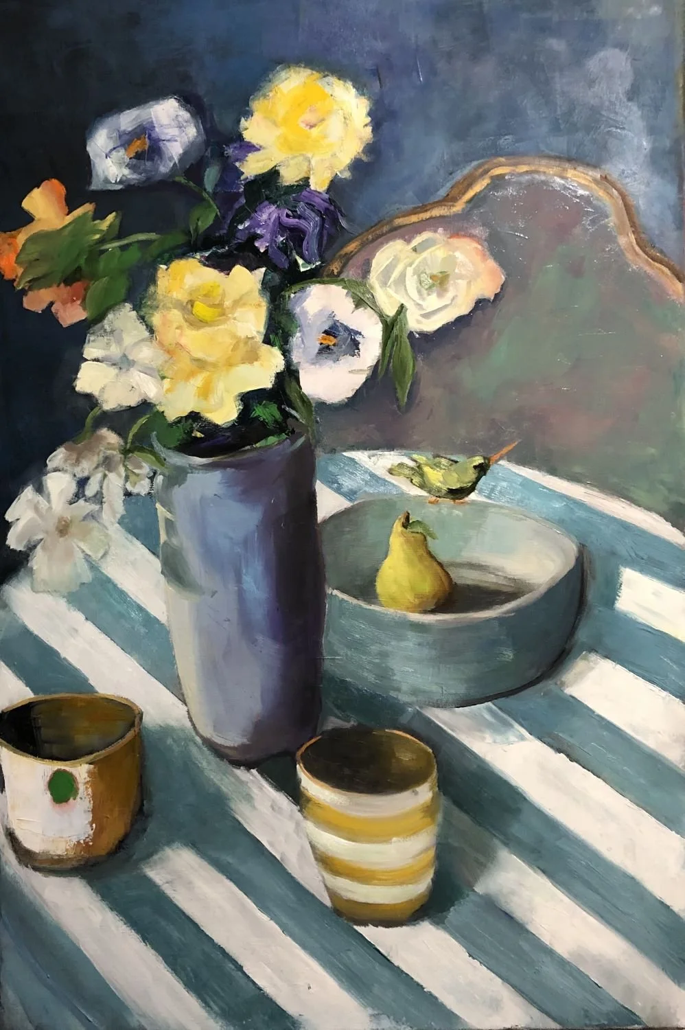 My primary medium is oil. I like to paint on stretched canvas, paper, wood, canvas and linen panels. I often paint from a collage I have put together to find color relationships and compositions. I use photographs and sketches to introduce images into a painting.